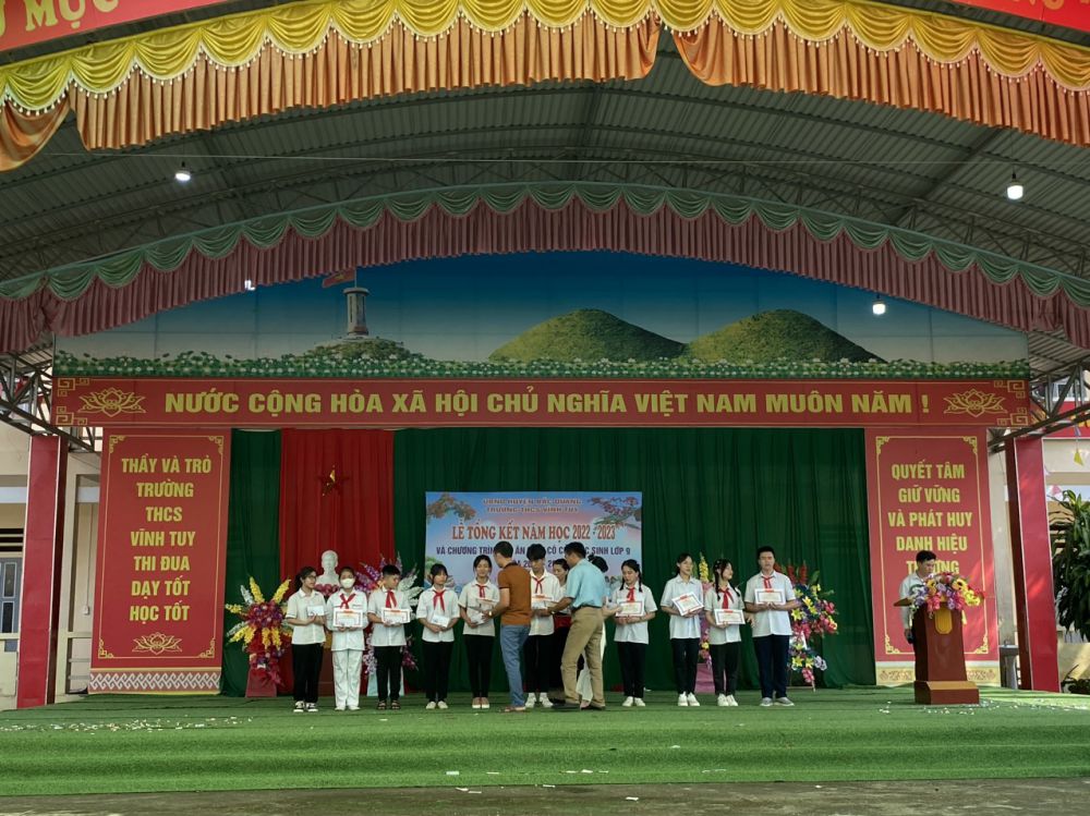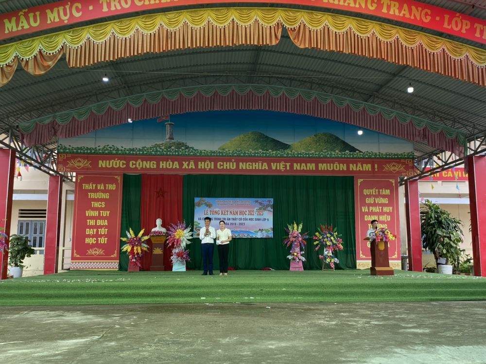 Sáng ngày 27/5/2023 trường THCS Vĩnh Tuy long trọng tổ chức lễ tổng kết năm học 2022-2023. Đây là dịp thầy và trò nhà trường nhìn lại những hoạt động của chặng đường vừa qua, cũng là dịp vinh danh những cá nhân, tập thể, giáo viên, học sinh đã có những thành tích xuất sắc trong học tập cũng như các phong trào của trường, của địa phương phát động.