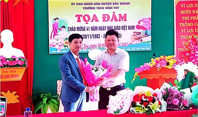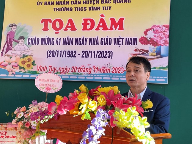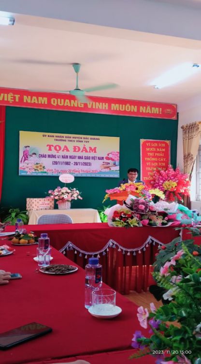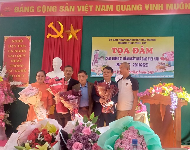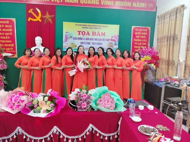 Hòa chung không khí phấn khởi của ngành giáo dục trong cả nước 41 năm ngày Nhà giáo Việt Nam (20/11/1982 - 20/11/2023). Trường THCS Vĩnh Tuy tổ chức buổi tọa đàm chiều ngày 20/11/2023. Với sự có mặt của nhiều thế hệ nhà giáo đã nghỉ hưu, BGH nhà trường, các thầy cô giáo đang công tác tại trường, đại diện lãnh đạo UBNDTT Vĩnh Tuy, đại diện hội cha mẹ học sinh các lớp và đại diện các cơ quan ban ngành.