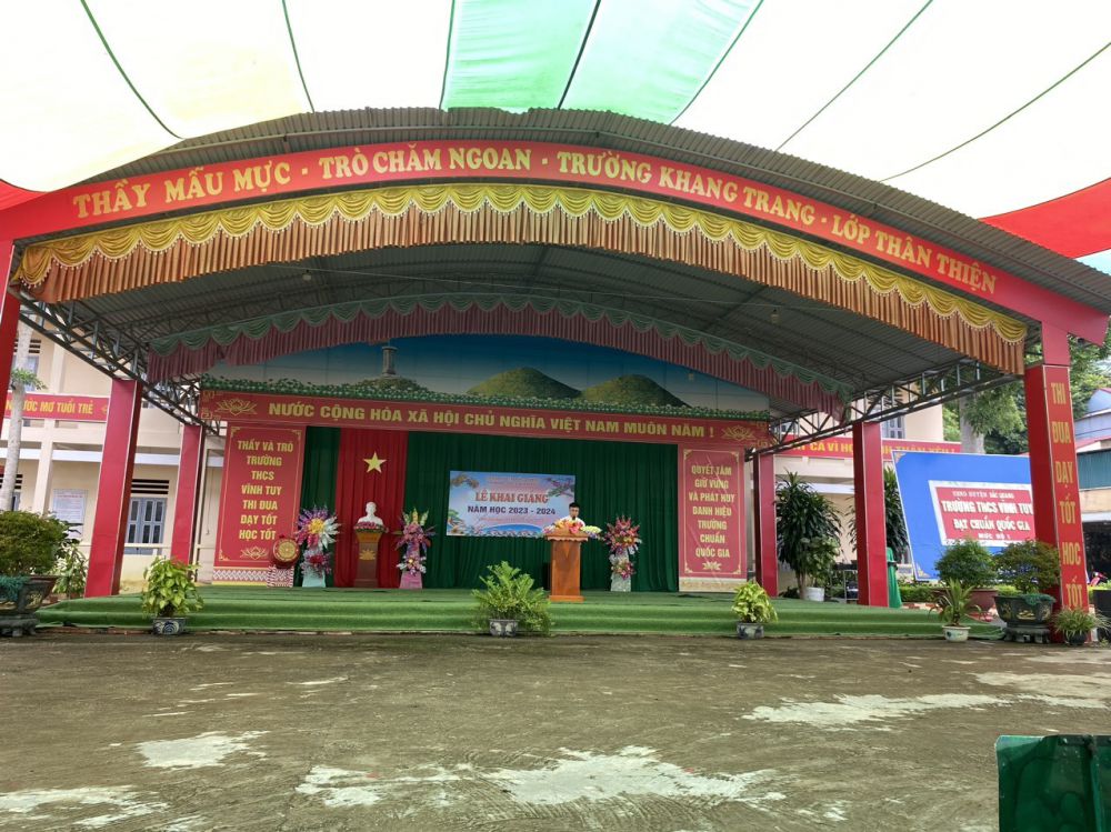 Trong không khí hân hoan cả nước kỷ niệm 78 năm ngày Cách mạng tháng Tám, Quốc khánh nước Cộng hòa xã hội chủ nghĩa Việt Nam (2/9/1945-2/9/2023), hòa cùng niềm vui của hàng triệu học sinh trên cả nước, sáng 5-9, Trường THCS Vĩnh Tuy long trọng tổ chức lễ khai giảng năm học mới, năm học 2023-2024..jpg)